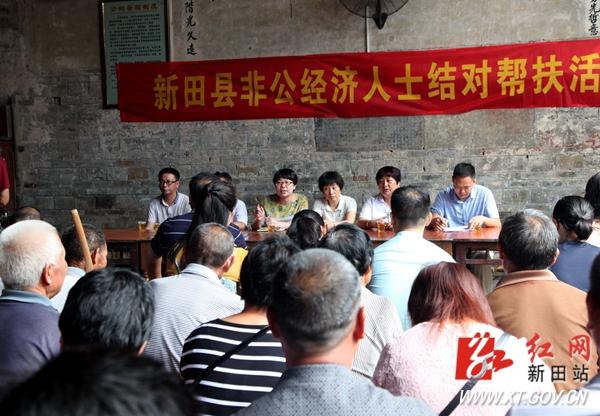今年来,新田县广泛动员全社会参与精准扶贫工作,特别是积极调动非公经济企业和人士助力全县脱贫攻坚,全县非公经济人士积极响应,主动作为,采取资金扶持、技术带动、劳务协作、结对帮扶等,帮助贫困村发展产业,引导扶助贫困户寻找致富门路,加快脱贫步伐。并通过“公司+合作社+基地+农户”等模式,实现“一人帮一户”、“一企帮一村”或“多企帮一村”和目标,带动了一批贫困户加入专业合作社组织,使贫困群众获得资金、技术和信息等方面支持和扶助,提高其自身发展动力和参与市场经济的能力。(记者邓提茂)