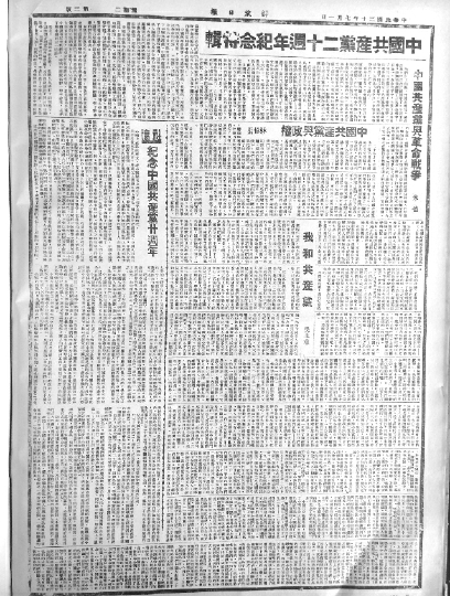 为纪念党成立15周年,一大代表陈潭秋在共产国际机关杂志《共产国际》(中文版)1936年8月第4—5期合刊上,发表了《第一次代表大会的回忆》一文。后来又发现了一份陈潭秋1936年7月在庆祝党的15周年纪念会上的讲话(提纲)。讲话中谈到:“代表团因为我是参加过党的成立大会——第一次代表大会的党员,要我作关于党十五周年纪念的报告”。陈潭秋的文章和讲话(提纲)都是以党诞生的月份为依据进行纪念的,并没有确切指出一大召开的具体日期。