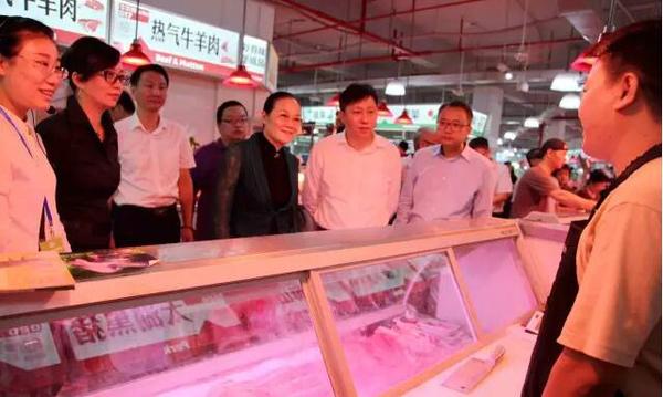 会后,赵雯一行赶赴芮欧广场晶采轩厨房、武定路菜场进行调研,实地了解了厨房电子视频监管体系和食品流通安全信息追溯体系的运作情况。