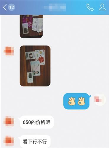 经过还价后,网络卖家同意以650元卖出银行卡“四件套”。