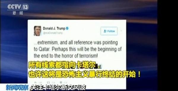 6月5号,沙特、埃及等多国几乎在同一时间宣布与卡塔尔断绝外交关系,酿出让人瞠目的“断交风波”。6号,美国总统特朗普在推特上连发三条推文,就“断交风波”进行表态。其中两条明确表示支持沙特等国孤立卡塔尔的行为。