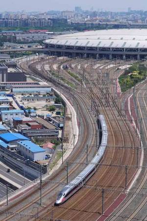 6月26日,“复兴号”G123次列车驶出北京南站。新华社记者邢广利摄