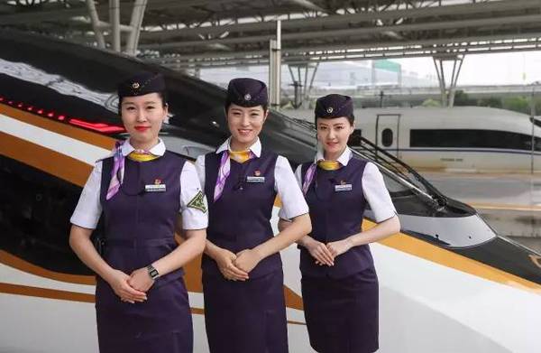 6月26日,在上海虹桥火车站,乘务人员站在“复兴号”G124次列车旁。新华社记者丁汀摄