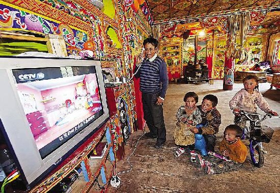 四川藏区牧业村定居点,电灯、电视、电话等配套设施齐备。资料照片