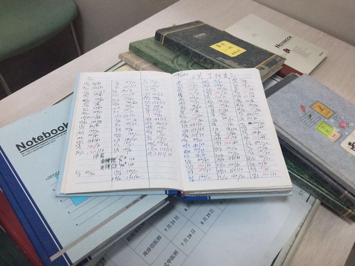 工作室里积攒下了六七十本笔记本,里面记录了六七百位老人的健康指数