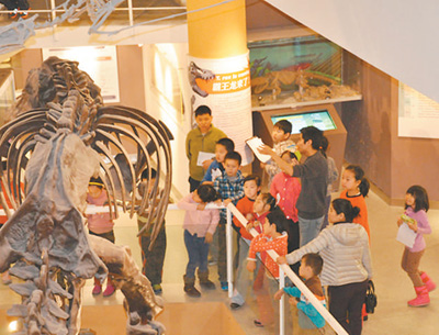 观众在北京古脊椎动物博物馆体验奇妙夜。