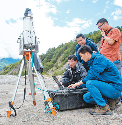 中科院成都山地所专家在考察现场。新华社记者金立旺摄
