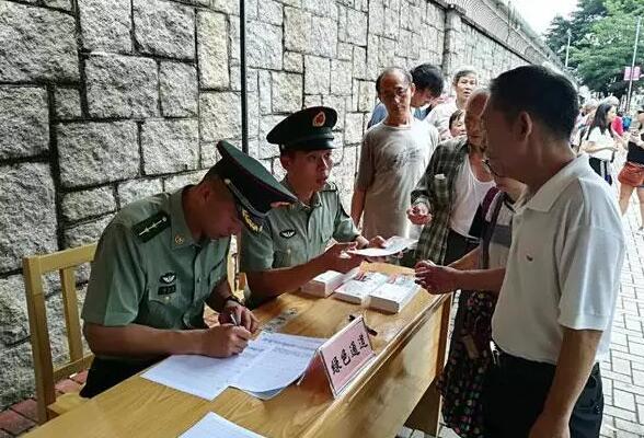 ??肯愀酆螅夜姿液娇漳附⒘赡⒓叭沂艚⒂?号及9号向公众开放。前几天,当辽宁舰??肯愀鄄⑾蛳愀凼忻窨诺南⒁痪迹煞⒉喂廴南⒋龊?,香港民众反映热烈,都期待能够登舰参观。3号,解放军驻港部队在香港中环军营、枪会山军营及石岗军营派发2000张辽宁舰的参观券,大批市民排队等候,一部分热心市民在前一天晚上10点左右就到达军营门口,开启“抢票”模式——备干粮、搭帐篷,连夜在放票点排起了长队。