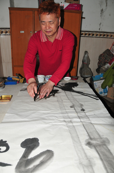 广西盲人按摩协会主席陶进,是位先天失明者,他非常喜欢画画 夏军/摄