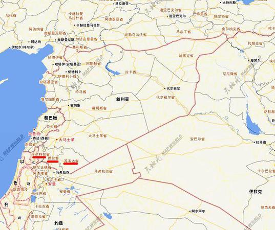 叙利亚德拉省、库奈特拉省和苏韦达省位置示意图。(地图来源:国家测绘地理信息局“天地图”在线地图)