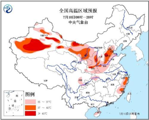 中新网7月10日电 据中央气象台网站消息,中央气象台7月10日6时继续发布高温黄色预警:预计,7月10日白天,华北中南部、黄淮西部、西北地区东部、内蒙古西部、甘肃北部、新疆北疆南部和南疆盆地、四川盆地西部、重庆北部以及浙江、福建、海南等地有35℃以上的高温天气。