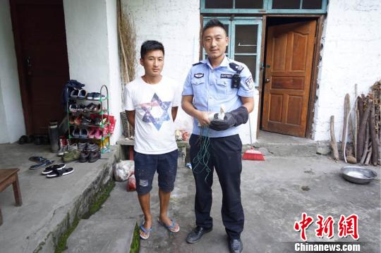 图为村民将黄嘴白鹭移交至民警 茶学华 摄