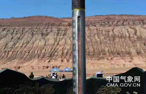 7月9日20时,新疆维吾尔自治区吐鲁番市吐鲁番站最高温度达47.8℃,与2008年8月4日和2011年7月14日共同位列建站以来最高气温排名并列第一。9日16时,“火洲”吐鲁番火焰山景区“定海神针”气温表显示地温88℃。杨扬 摄影