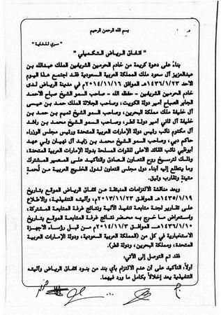 当地时间10日晚,沙特多家媒体曝光了两份标记为“绝密”的文件,分别为沙特等国与卡塔尔在2013年11月签订的《利雅得协议》,以及2014年11月签订的《利雅得补充协议》。