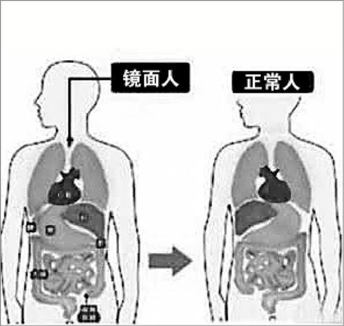 体内的脏器类似于正常人照镜子,五脏六腑的位置与常人相反,过着“颠倒”的人生,这就是我们常说的“镜面人”,发生概率只有百万分之一。