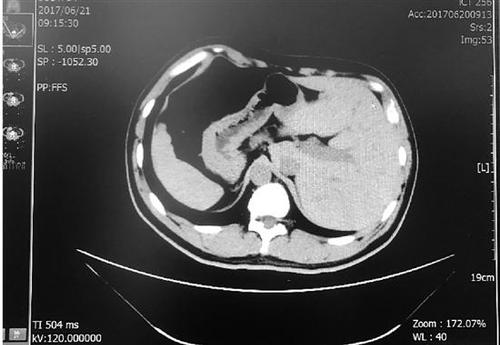 张先生的肝脏在左侧,脾脏在右侧,与正常人相反。