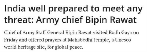 8日当天,和敏昂莱一同参观该寺庙后,印度陆军参谋长拉瓦特被媒体问及对中印两军边境对峙的看法,他回应说:“现在不是讨论这个问题的合适场合或时机”,但同时他也强调:“没有人能质疑印度的军事能力”。