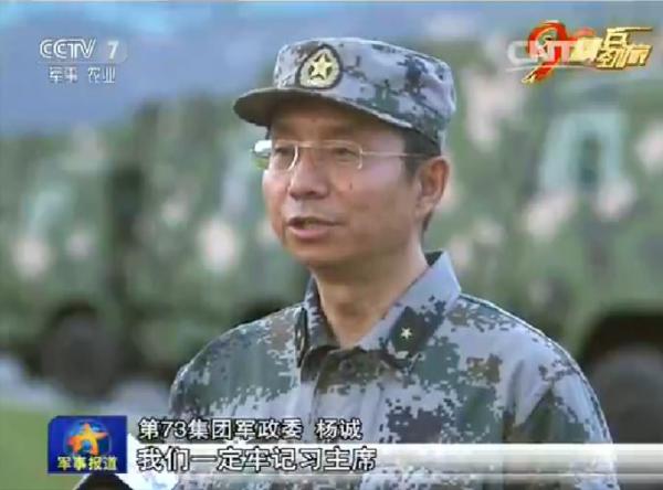 上述《军事报道》栏目电视画面显示,杨诚少将已经出任新组建的陆军第73集团军政委一职。