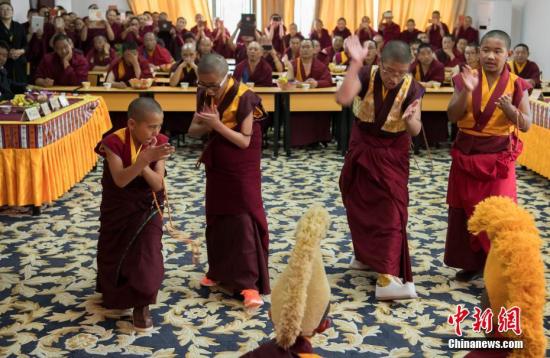中新社拉萨7月11日电(何蓬磊)西藏佛学院首届少年活佛班7名学员10日完成三年小学阶段任务,顺利毕业。这是西藏在培养少年活佛的一次创新探索,变寺庙传统培养为与现代学院教育相结合的培养模式。