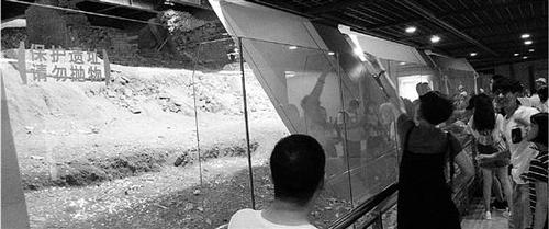 记者看到,这里被四面玻璃幕墙围着,里面是已经挖掘过的雷峰塔和地宫的遗址,保持着当年挖掘后的原貌,高出地面近3米,上面是或倒或塌的砖墙。玻璃幕墙外面围满了游客?!翱窗】窗?,好多钱!”时不时响起小孩子的大喊。