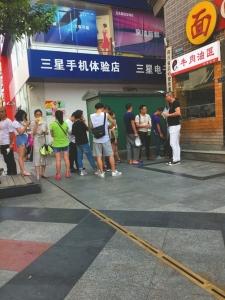 7月11日下午1点,记者再次前往现场调查。如同前一天,这里仍然是排起了长长的队伍。穿着白色短袖、负责收钱指挥排队的店员还是一样的吆喝词。