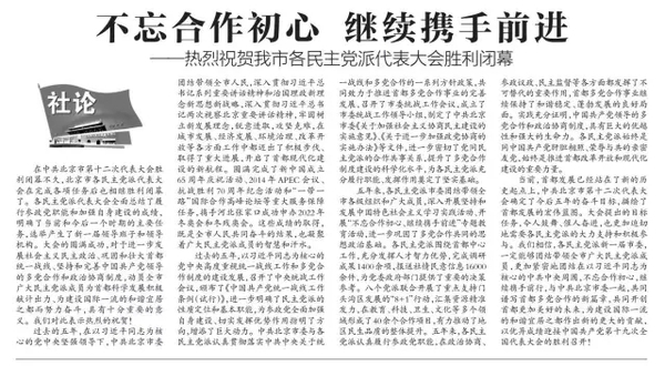 7月12日出版的《北京日报》刊发社论《不忘合作初心 继续携手前进》,为北京市各民主党派换届工作划上一个圆满的句号。从6月27日到7月10日,北京各民主党派先后召开了代表大会,选举产生新一届领导班子。据团结君观察,北京的民主党派换届工作,有许多值得关注的地方和现象,且听为您一一道来。