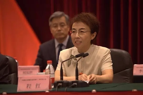 中国民主同盟北京市第十二次代表大会于7月6日至9日在北京召开。图为闭幕式上,程红主委代表新一届民盟北京市委领导班子作表态发言。