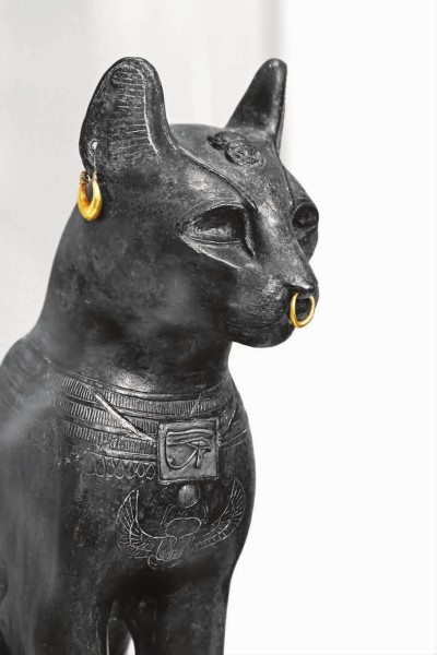 埃及猫神贝斯特雕像。公元前2000年的尼罗河三角洲就有猫神崇拜了,人们不仅给猫神贝斯特造像,在猫去世以后也为它们制作木乃伊。