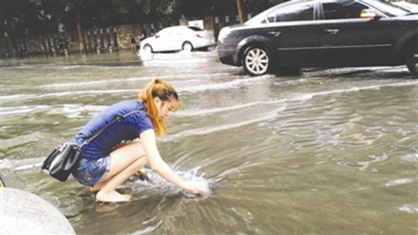 女孩雨中光脚清理下水道垃圾 网友:比彩虹还耀眼