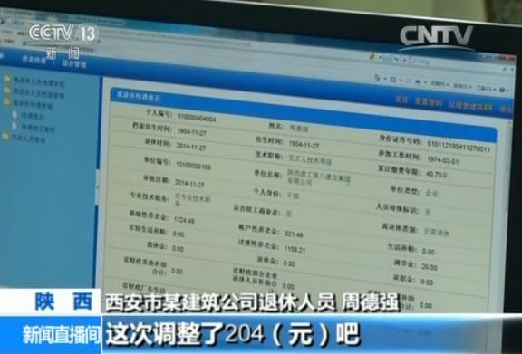 西安市某建筑公司退休人员 周德强:我在调整前是3690多加上独生子女费,就是3800元,这次调整了204元吧,估计在4000元以上,这个数字我心里挺满意的,在西安生活基本可以了。