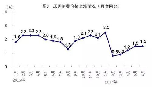 上半年,全国居民消费价格同比上涨1.4%,涨幅与一季度持平。其中,城市上涨1.5%,农村上涨1.0%。