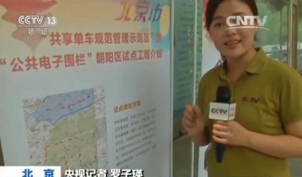 央视记者 罗子瑛:在北京市朝阳区三里屯街道和左家庄街道的七平方公里的试验区,一共划了75个共享单车的停车区域,其中有20处是加装了电子围栏,那很多观众朋友就会问了,电子围栏是如何规范停车的,我们来看一下我身边这一处就是加装电子围栏的停车区了。乍一看,和普通的停车区没有什么区别,但是仔细观察,这里多了四个像这样十厘米见方的小方块。