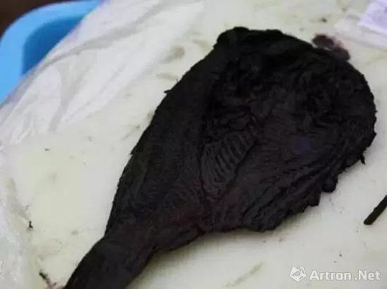 考古人员打开一只生锈的铜敦,发现里面装满了一块块碳化的东西。铜敦是古代的一种食器,由此专家推断里面的碳化物应该是一块块的肉制品。