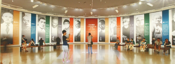 六个板块的展览占据了中国美术馆一楼、三楼、五楼的几乎全部展厅。要一览广东百年美术的全貌,需要走17个展厅,对观众来说无疑是件“拼体力”的事情,不少观众会中途挤在休息区,稍作休息后继续观展。