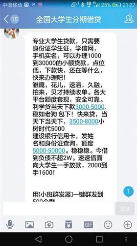 “专业网贷服务,专治黑户、烂户以及大学生网贷服务,无视被拒次数” ;“全日制负债3万下非专三本四,非偏远地区,还款大于负债,开始来领钱了”……