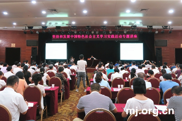7月18日,民进中央副主席、学习实践活动领导小组办公室主任刘新成赴学习实践活动联系点陕西省渭南市委会开展调研。图为刘新成为联系点会员代表作学习实践活动专题讲座。