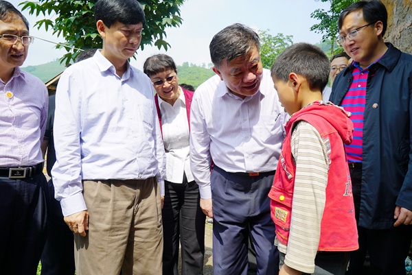 陈竺来到一个年仅11岁的留守儿童身边,亲切地询问他的家庭情况。当得知父母都在浙江打工,只有他和大他两岁的哥哥在家中时,不禁动容。走进家中,环视简易的木砖架构的房子说,“这是典型的危房”??吹焦锸O碌姆共?,只有米饭和酸菜时,不禁为孩子的营养状况担忧。当得知,该户已于今年被纳入了建档立卡户,感到少许欣慰。