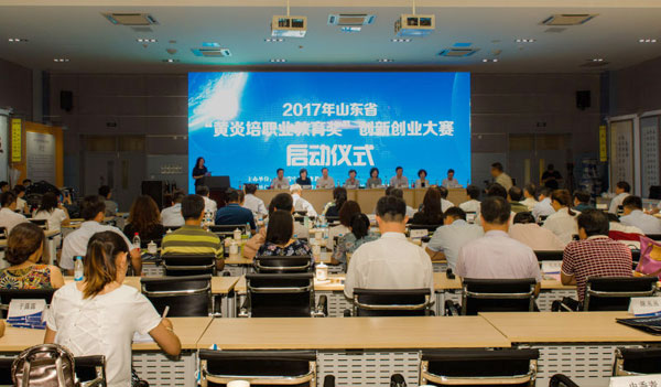 2017年山东省黄炎培职业教育奖创新创业大赛启动仪式7月7日在济南工程职业技术学院举行,省政协副主席、职教社主任郭爱玲,中华职教社党组成员、副巡视员李英爱出席仪式并讲话。