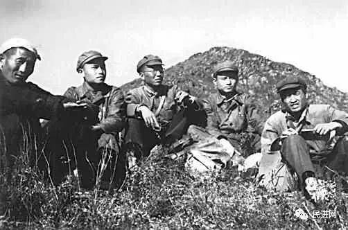 1954年,王鸿祯(左三)带着学生在中条山铜矿区园头山顶参加野外观察。