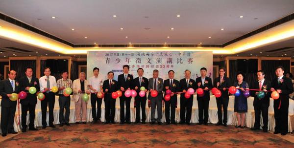 7月14-17日,由澳门辛亥·黄埔协进会主办的2017年度(第十一届)海峡两岸“民族心·中华情”青少年征文演讲比赛在澳门举行。中国侨联副主席、澳门地区中国和平统一促进会会长刘艺良、澳门中联办台湾事务部部长徐莽、海峡两岸关系协会驻澳门办事处专员浦江元、澳门地区全国政协委员黎振强、澳门辛亥·黄埔协进会会长林园丁等20余名嘉宾出席活动。34名来自海峡两岸暨香港、澳门地区的青少年在为期二天的决赛中,用慷慨激昂的演讲抒发了对香港回归二十周年的真挚祝福和对两岸和平统一、中华民族大团结的美好期许。