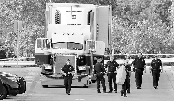 【环球时报驻美国特约记者 侯健羽 环球时报特约记者 刘皓然】当地时间23日,美国得克萨斯州圣安东尼奥警方在一台拖曳式大型卡车上发现了人间地狱般的一幕:几十人拥挤在车厢里奄奄一息,其中8人已死,另有两人在送医后身亡,这幕骇人场景震动了世界。有媒体报道称,美国南部同邻国接壤地带人口走私事件层出不穷,几乎记载了美洲非法移民的“偷渡血泪史”,而此次这起恶性案件也令得克萨斯这个南部第一大州再次成为舆论聚焦的“震中”地带。