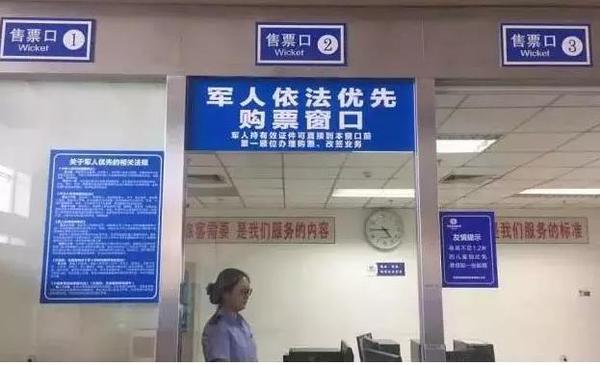 8月1日起,全国地级及以上城市所在地主要铁路客运站将陆续设置军人优先购票窗口,直辖市、省会(首府)及计划单列市所在地主要铁路客运站设置军人候车室(区)。各铁路局还将根据场地条件及客流需求等实际情况,在其他客运站设立军人候车室(区)。铁路总公司明确要求,军人优先购票窗口、军人候车室(区)将设置醒目标志。