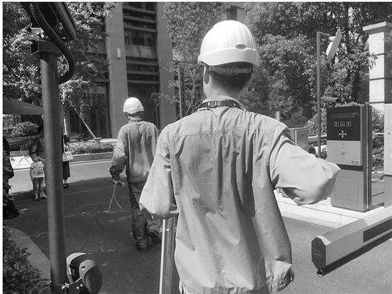 丁荣荣和陈全良带着钱报记者来到天目山路一个高档小区维?;獾墓袷降餮蛊?,维护过程大概用了10分钟,记者感到汗水已经啪嗒啪嗒从脸上流下来了,“我戴眼镜,也挺怕汗多的,眼镜有时候会糊?!倍∪偃偎?。