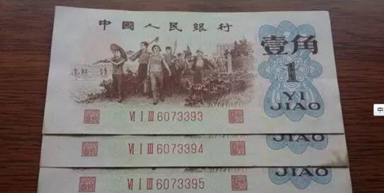 背景描述:上世纪五十年代末中苏交恶,关系出现裂痕,我国印钞工业与苏联的合作受到严重影响,苏联拒绝提供水印钞票纸。经过艰苦的努力攻关奋斗,我国终于自制成功了园网造纸机,生产出了空心五角星满版水印钞票纸,结束了完全依赖外国的历史。由于技术的限制,产量不高,纸张较薄,耐磨性能差,纸质比不上苏联印钞纸。“背绿水印”是首次尝试使用这种国产印钞纸印刷的钞票,是我国印钞防伪技术的一个里程碑式的见证。因为1962年版“背绿壹角”背面颜色,与1962年版贰角券背面颜色相似,中国人民银行于1967年12月,重新发行了背面调整为绛紫和橘黄色的壹角券(红三凹版水印壹角),宣布对1962年版“背绿壹角”实行只收不付(包括“背绿水印”)。