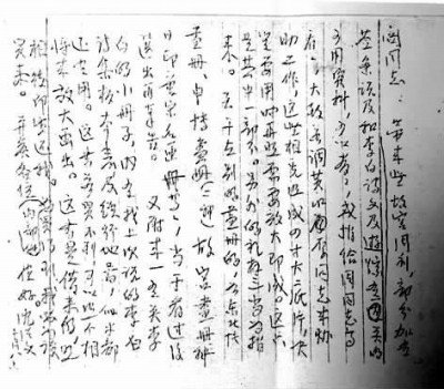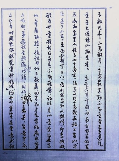 这封信像是一个手写便条,是用钢笔竖写的,日期为“十月八日”,应该是1973年,当时沈从文正有意调在合肥的黄永厚参与太白楼的陈列事宜。玉敏同志:不见数月,在安徽运动不知是否还在进行,还是已经转入抓生产。我是六月 中旬由南方回来的。去苏州和家里人住了四十多天。后来又同十多亲友爬上黄山,前后过了八天。在雨雾中上山,传 (转) 到住处即又放晴,印象极好。体力也还对付得过去,不感疲劳。证明身心还受得住高山气候考验。惟视力似已较差,回来后才知道眼底出血并未吸收,并发现有轻微白内障,因此左眼视力衰退,实意中事! 近正争时间赶抄“服装资料说明”,约廿四万字,若无意外故障,年终或可上交?;鼓馓砣灏俑酵迹谒得髦?,说服力或较强。你上次借用的材料,存馆中的已看过?;褂行┠愦ズ戏什糠?,盼望你能协助一下,为暂时寄还,便于清点清点。以后若还有用,仍可借去使用。你同学张同志闻已因病不能到馆工作。刘焕章则去邯郸作了些黑釉瓷动物,一尺以上大的,大致还不错。近几个月又去大砦搞陈列馆用一个群相,已完事。可能还将作个露天用较大型的?;朴烙竦纫盐奘?,只是李可染、吴作人等画,不供分销月份牌使用。又闻新北京饭店也不用。若照 日本文艺界出面情形而言,过不多久,但又会出面,也未可知。