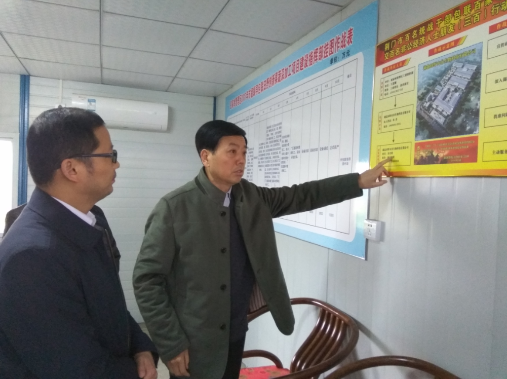 市委常委、市委统战部长郑中华查看“三百”行动作战图