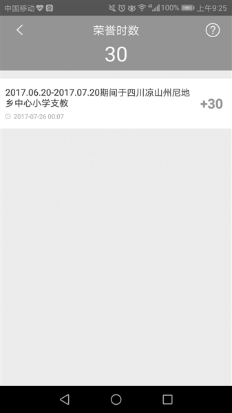 填写个人信息后的第二天,“志愿汇”APP上增加了30个小时的志愿时长,志愿服务信息与购买时填写的信息一致
