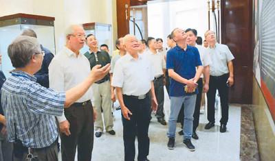 图为7月22日石雕大师倪东方(前排左三)陪同蔡文显(前排左二)及访问团在青田县参观倪东方艺术博物馆。(叶春笼摄)
