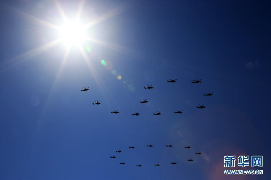7月30日,庆祝中国人民解放军建军90周年阅兵在位于内蒙古的朱日和训练基地举行。中共中央总书记、国家主席、中央军委主席习近平检阅部队并发表重要讲话。这是纪念标识梯队。新华社记者 查春明 摄 图片来源:新华网