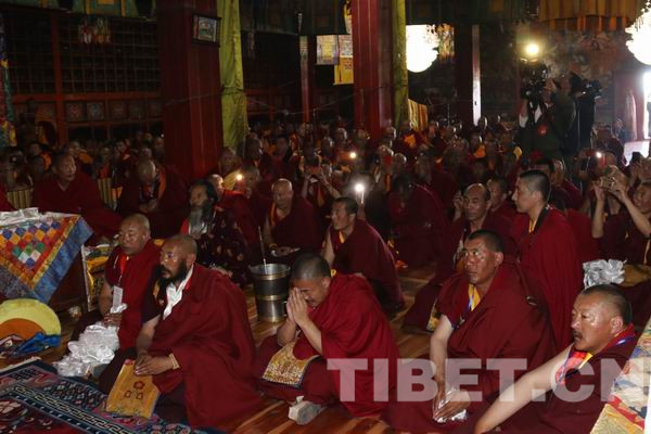 △图为认真听法的贡萨寺僧众。
